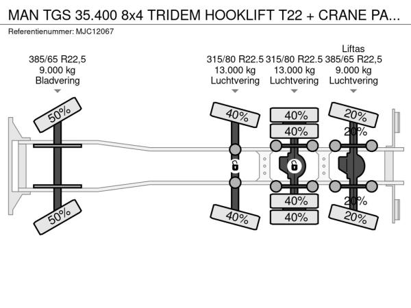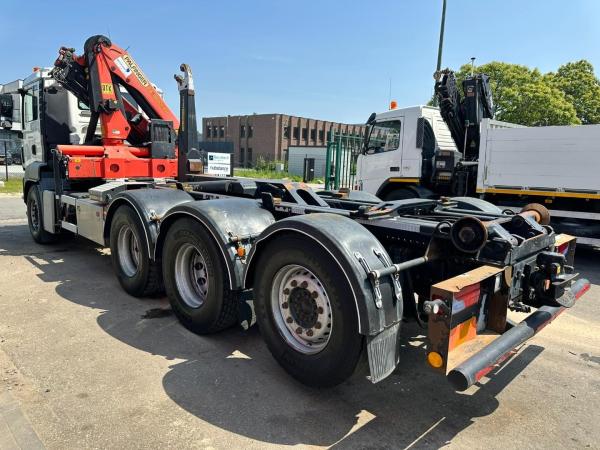 | Spécialités | TGS 35.400 8x4 TRIDEM HOOKLIFT T22 + CRANE PALFINGER PK 18001 EH + RADIO - EURO 5 - LIFT/STEERING AXLE - BE TRUCK |