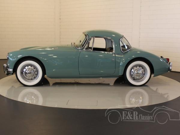 This is a 1959 MGA coupe. In 2016 this car was fully in detail body off restored and is in topcondition. Since then the car has driven only about 50 kms. Full photoreport of the restoration is present. The car has Island Green paint with black leather interior. This is a beautiful classic combination with the original wheels and Whitewall tyres. The 4 cyl engine is fully revised and connected to the 4-speed manual gearbox. So a rare beautiful MGA coupe, ready for driving.