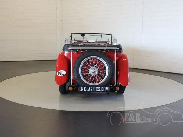 Beautiful 1948 MG TC. Provided with red paint, wire wheels and marvellous chrome. The interior has the original black leather seat and the elegant dashboard with chrome clocks. This MG has had 1 owner since 1979 and is a real car for the fans.