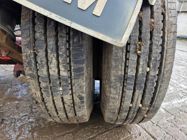 Essieu 1: Roues jumelées; Sculptures des pneus gauche interne: 90%; Sculptures des pneus gauche externe: 90%; Sculptures des pneus droit externe: 90%; Sculptures des pneus droit externe: 90%