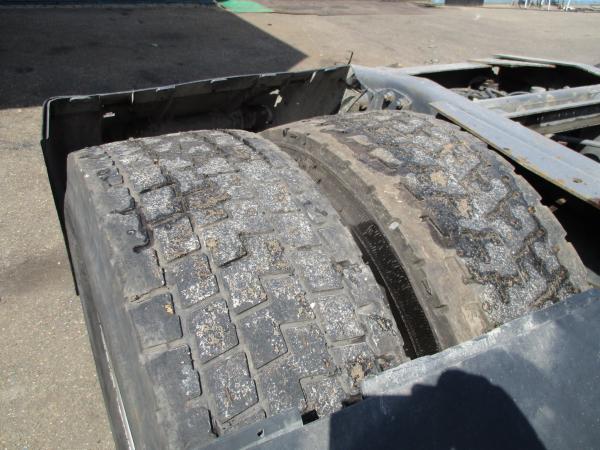 Achteras: Dubbellucht; Max. aslast: 11500 kg; Bandenprofiel linksbinnen: 30%; Bandenprofiel linksbuiten: 50%; Bandenprofiel rechtsbinnen: 20%; Bandenprofiel rechtsbuiten: 20%; Remmen: trommelremmen; Vering: luchtvering