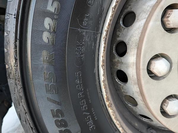 Vooras: Bandenmaat: 385/55 R22.5; Meesturend; Bandenprofiel links: 10 mm; Bandenprofiel rechts: 10 mm; Vering: bladvering