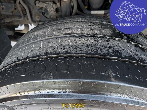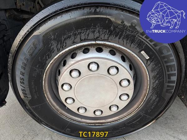 Achteras: Bandenmaat: 315/70 R22.5; Dubbellucht; Bandenprofiel linksbinnen: 12 mm; Bandenprofiel linksbuiten: 15 mm; Bandenprofiel rechtsbinnen: 16 mm; Bandenprofiel rechtsbuiten: 15 mm; Vering: luchtvering