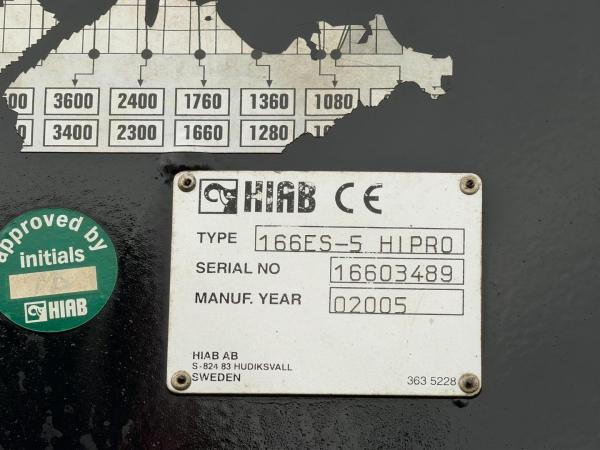 Crane: HIAB 166 ES-5 HIPRO, year of manufacture 2005, behind the cab