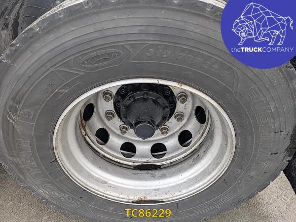 Achteras: Bandenmaat: 315/70 R22.5; Dubbellucht; Bandenprofiel linksbinnen: 3 mm; Bandenprofiel linksbuiten: 3 mm; Bandenprofiel rechtsbinnen: 2 mm; Bandenprofiel rechtsbuiten: 2 mm; Vering: luchtvering