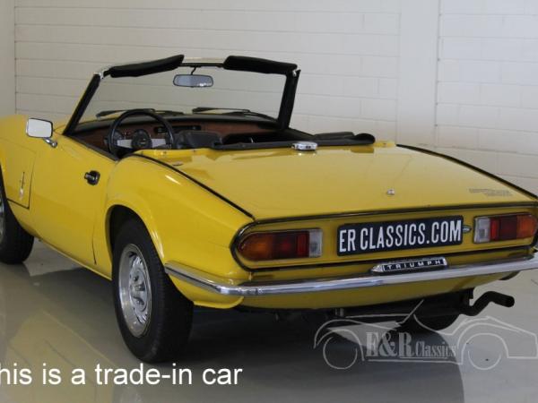 This Triumph was delivered in 1978 and provided with an Inca yellow paint with the originel wheels. The interior has the original wooden dashboard and black leatherette. The Triumph drives, brakes and shifts gear very well. The Spitfire has valid Holland APK.