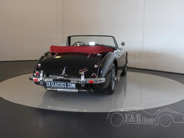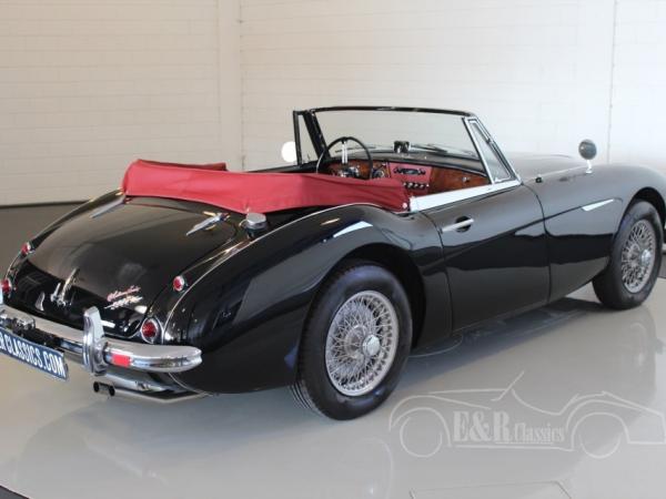 This is a 1964 Austin healey 3000 MK3 (BJ8). In 2016 this car was fully restored in our workshop according to the original specifications and provided with the original colour combination of black paint with red leather interior. The combination with the wire wheels, the wooden dashboard and burgundy red Sonnenland softtop, makes this car marvellous and very chic. So a beautifully restored Austin Healey 3000 MK3 BJ8 Phase 1. This car has power steering.