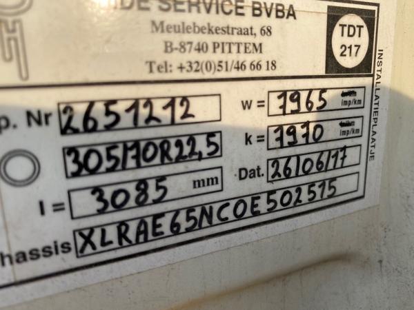 Achteras: Bandenmaat: 305/70R22.5; Dubbellucht; Bandenprofiel linksbinnen: 60%; Bandenprofiel linksbuiten: 60%; Bandenprofiel rechtsbinnen: 60%; Bandenprofiel rechtsbuiten: 60%; Reductie: enkelvoudige reductie