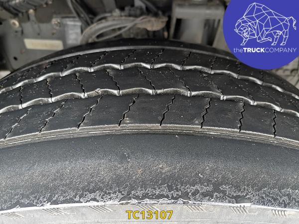 Achteras: Bandenmaat: 315/80 R22.5; Dubbellucht; Bandenprofiel linksbinnen: 7 mm; Bandenprofiel linksbuiten: 8 mm; Bandenprofiel rechtsbinnen: 7 mm; Bandenprofiel rechtsbuiten: 5 mm