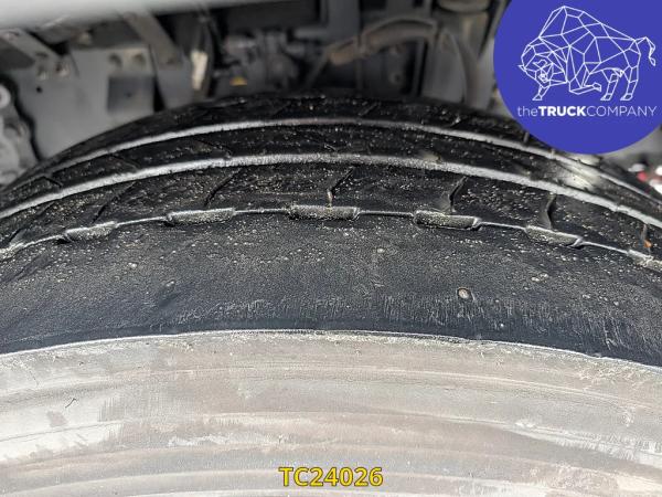 Achteras: Dubbellucht; Bandenprofiel linksbinnen: 5 mm; Bandenprofiel linksbuiten: 8 mm; Bandenprofiel rechtsbinnen: 8 mm; Bandenprofiel rechtsbuiten: 5 mm; Vering: luchtvering