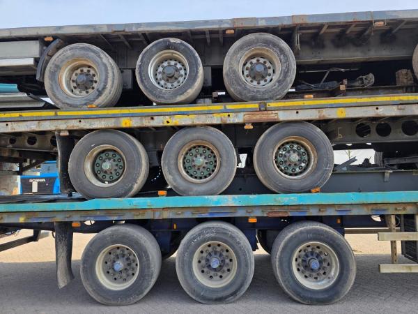 Sterke en betrouwbare partij van 5 Platte opleggers geschikt voor transport en export. Deze trailers zijn uitgevoerd met een robuuste constructie en staan bekend om hun degelijkheid en eenvoudige techniek.