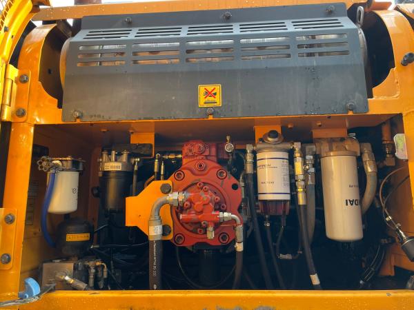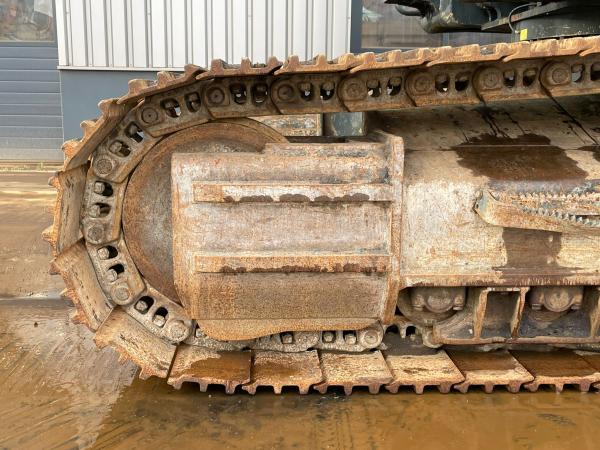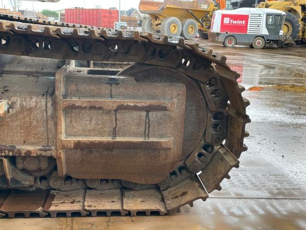 It is powered by a 267 kW engine and equipped with air conditioning and hydraulic hammer lines.