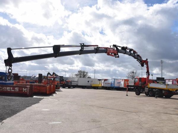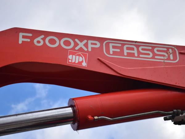 FASSI F600XP – Flygip – Winch – 4 steunpoten – Naafreductie – koppelschotel+ Laadbak +- 3 m – totaal 26.000 kg – Tarra 17355 kg – Wielbasis 3200 mm –