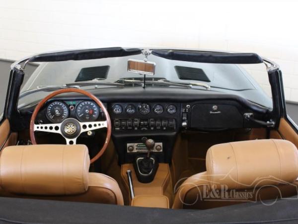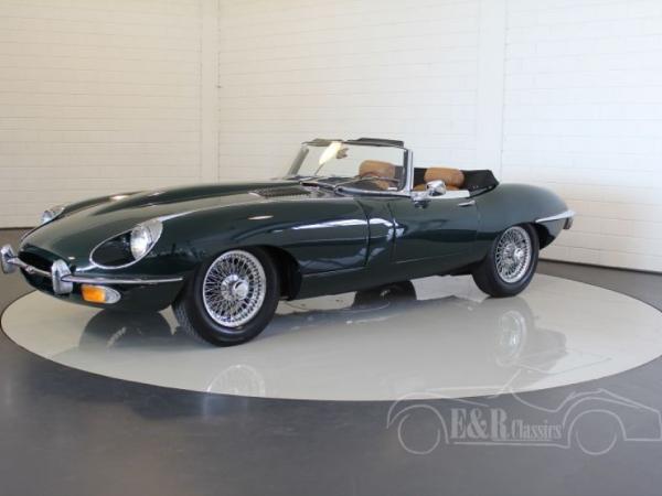 This Jaguar E-Type Series 2 cabriolet was built in 1969. In the meantime this Jaguar is restored and provided with a beautiful British Racing Green paint and fabulous chrome wire wheels. The Jaguar drives great and is powered by the original matching numbers 6 cyl engine. The interior of the Jaguar has beige leather and is very comfortable. The dashboard has the beautiful original wooden steering wheel. This fabulous E-Type drives great and is ready for lots of driving fun.