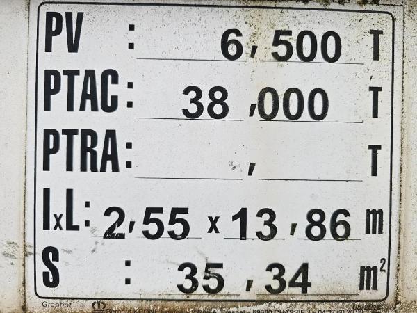Essieu arrière 1: Dimension des pneus: 385/65 R; Sculptures des pneus gauche: 50%; Sculptures des pneus droite: 50%