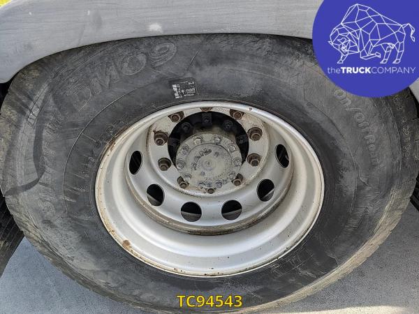 Achteras: Bandenmaat: 315/80 R22.5; Dubbellucht; Bandenprofiel linksbinnen: 12 mm; Bandenprofiel linksbuiten: 6 mm; Bandenprofiel rechtsbinnen: 9 mm; Bandenprofiel rechtsbuiten: 9 mm; Vering: luchtvering