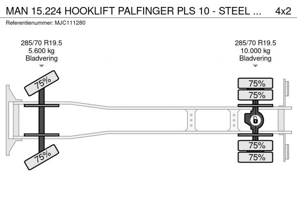 MAN (2000) MAN 15.224 HOOKLIFT PALFINGER PLS 10 - STEEL SPRING / BLATT / BALLESTAS - EURO 2 - MANUAL - BE TRUCK MJC111280