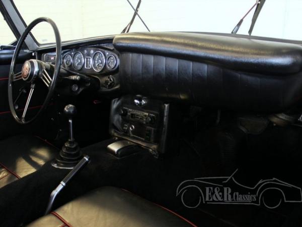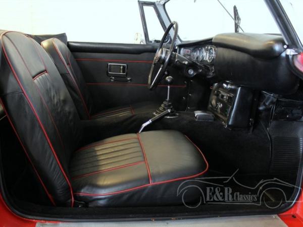 This MGB was delivered in 1968 in red paint with marvellous chrome and wire wheels. The 1798CC engine was fully checked and drives perfect. The dashboard has the original chrome clocks and the interior has black leather with red piping. This perfect driving MG is ready for a lot of pleasure rides.