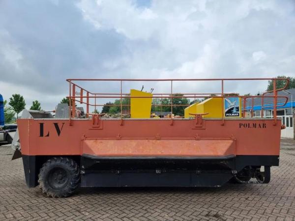 Le LV Polmar est un impressionnant véhicule amphibie de la marque AMFIBIVOERTRUIG. Il s'agit du modèle POLL AFIR 3000. Avec une longueur de 7 mètres, une largeur de 2,3 mètres et un tirant d'eau de 2,9 mètres, ce bateau offre espace et stabilité pour diverses applications.