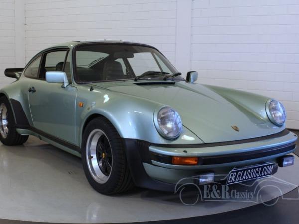 This very impressive Porsche 930 Turbo was delivered in 1976 in Germany and has had only 2 owners since then. The car has Silber Grün Metallic paint with Fuchs wheels, a fabulous combination. This Porsche also has a perfect functioning electronis sunroof. Recently the original Matching Numbers engine was fully revised and that’s why this Porsche drives perfect. The impressive sound of the 290 HP engine is a pleasure for every car fan. The interior has green leather and is in fully original and very good condition. This perfect driving Porsche 930 Turbo is a unique car for fans.