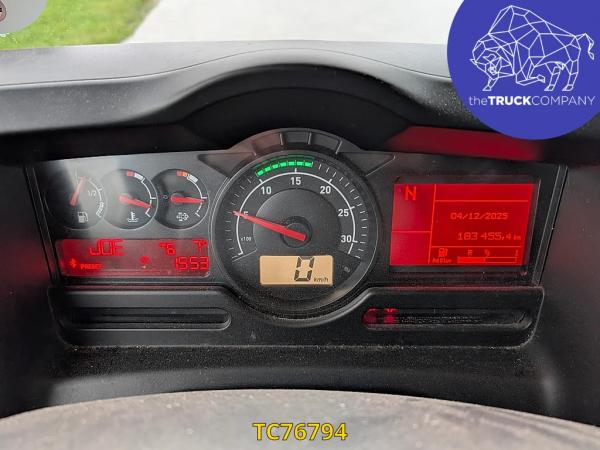 Achteras: Bandenmaat: 315/70 R22.5; Dubbellucht; Bandenprofiel linksbinnen: 12 mm; Bandenprofiel linksbuiten: 12 mm; Bandenprofiel rechtsbinnen: 12 mm; Bandenprofiel rechtsbuiten: 11 mm; Vering: luchtvering