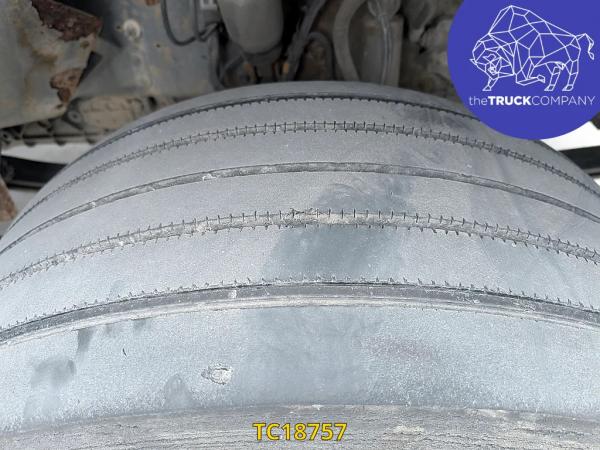 Achteras: Bandenmaat: 315/70 R22.5; Dubbellucht; Bandenprofiel linksbinnen: 14 mm; Bandenprofiel linksbuiten: 13 mm; Bandenprofiel rechtsbinnen: 13 mm; Bandenprofiel rechtsbuiten: 14 mm; Vering: luchtvering