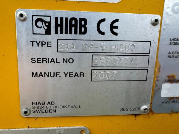 Kraan: HIAB 288 EP-5 HIDUO, bouwjaar 2007, achter de cabine