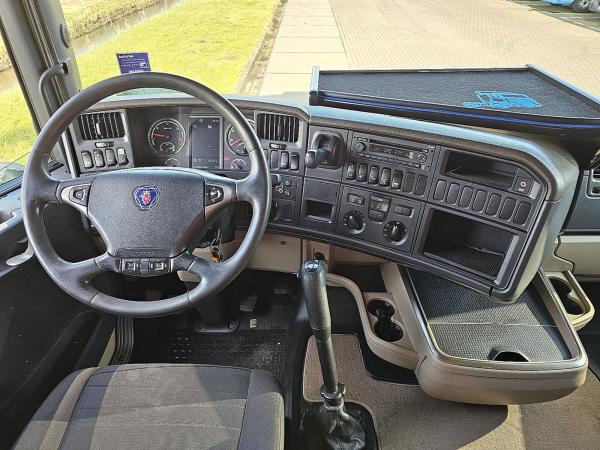 Aantal Assen: 2, Configuratie: 4x2, Eigen gewicht: 7490 kg, Totaalgewicht: 20100 kg, Diesel inhoud totaal: 700 liter, Schotelhoogte: 120 cm, Schotel type: Fixed, Aantal sperren: 1, Lichtmetalen velgen, Vering type: luchtvering, Soort cabine: Highline, Cruise control, Tachograaf, Digitale tachograaf, Airconditioning, Stand airco, Standkachel, Kleur: Meerkleurig, Motorvermogen: 324 Kw (434 Hp), Euro: 5, Soort versnellingsbak: Handgeschakeld, Versnellingen: 12, Koppelingspedaal, Extra remsysteem, Merk retarder: Scania, Stuurbekrachtiging, ABS (Anti Blokkeer Systeem), ASR (Anti Slip Regeling), PTO, PTO soort: 2, Bulkcompressor