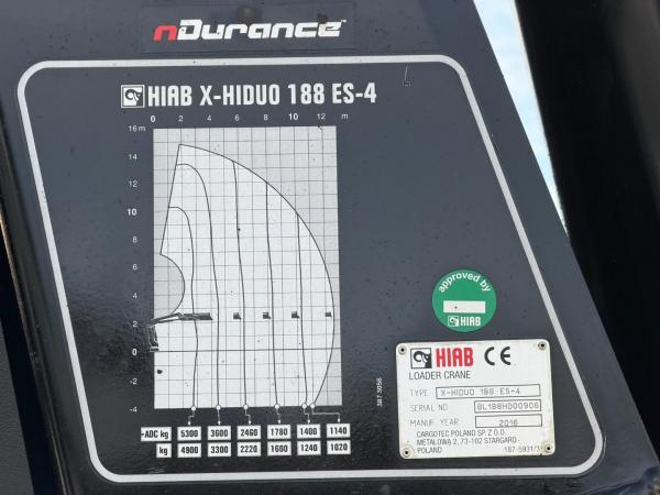 Crane: HIAB 188 ES-4, year of manufacture 2016, on rear of chassis