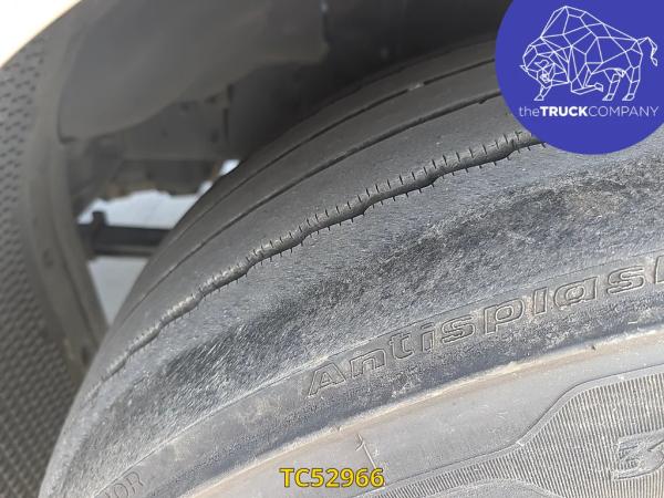 Vooras: Bandenmaat: 385/65 R22.5; Meesturend; Bandenprofiel links: 10 mm; Bandenprofiel rechts: 8 mm; Vering: bladvering