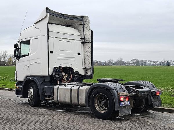 Aantal Assen: 2, Configuratie: 4x2, Eigen gewicht: 8040 kg, Totaalgewicht: 18600 kg, Diesel inhoud totaal: 700 liter, Schotelhoogte: 118 cm, Schotel type: Fixed, Aantal sperren: 1, Vering type: luchtvering, Soort cabine: Highline, Cruise control, Tachograaf, Digitale tachograaf, Airconditioning, Standkachel, Kleur: Wit, Soort lampen: Halogeen, Motorvermogen: 309 Kw (414 Hp), Brandstof: diesel, Euro: 5, Soort versnellingsbak: Opti-cruise, Merk versnellingsbak: Scania, Versnellingen: 12, Extra remsysteem, Merk retarder: Scania, Stuurbekrachtiging, ABS (Anti Blokkeer Systeem), ASR (Anti Slip Regeling), Start accu, Stoelopstelling: 1+1, Stoelbekleding: stof, Stoel verstelling: Handmatig