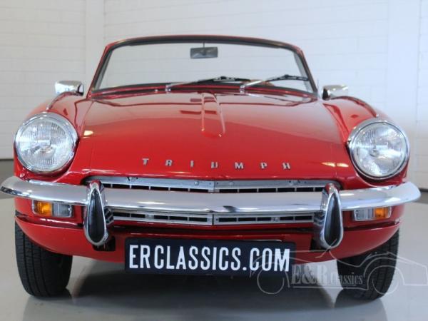 Since 1967 the Spitfire MK3 was introduced. This beautiful Triumph Spitfire MK3 was delivered in 1968 with Signal Red paint. This red colour with the chrome is a beautiful combination. The interior of the Triumph has black leather with white piping. Dashboard has wooden details. This Triumph has the original and fully revises 1296CC, 4 cyl, 83HP engine. This marvellous Triumph Spitfire MK3 is ready for a lot of driving fun.