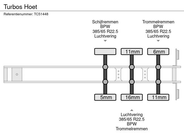 Achteras 3: Bandenprofiel links: 11 mm; Bandenprofiel rechts: 6 mm; Remmen: trommelremmen