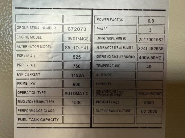 VOLVO (2025) Volvo TWD1744GE - 825 kVA Generator - DPX-18886