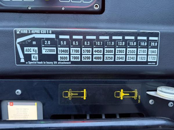 | Particolari | FH 500 8x2 + KRAN HIAB X-HIPRO 638 E-8 + JIB 105X-6 + WINCH - *72.000km* - BE TRUCK - 6m30 - TOP CONDITION |