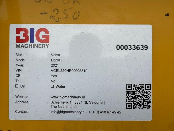 This Volvo L220H wheel loader, built in Sweden in 2021, is available for sale at BIG Machinery in the Netherlands.