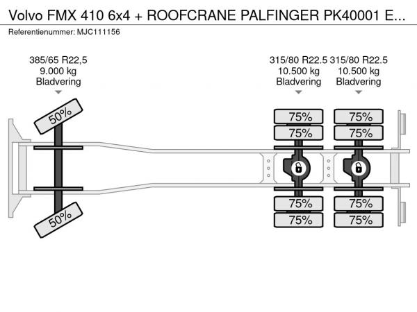 VOLVO (2012) Volvo FMX 410 6x4 + ROOFCRANE PALFINGER PK40001 EL + WINCH - 366.000km - EUR 5 - I SHIFT - TUV 12/2026 - BE TRUCK MJC111156
