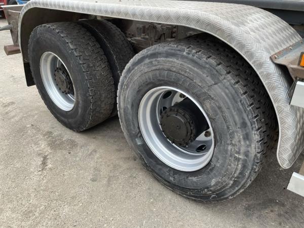 Achteras 1: Bandenmaat: 315/80R22.5; Dubbellucht; Differentieelslot; Bandenprofiel linksbinnen: 75%; Bandenprofiel linksbuiten: 75%; Bandenprofiel rechtsbinnen: 75%; Bandenprofiel rechtsbuiten: 75%; Reductie: naafreductie