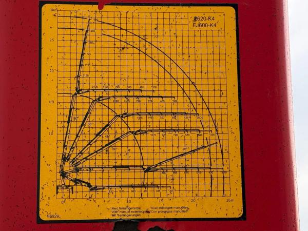 Kraan: HMF 2620-K4 + FLYJIB, bouwjaar 2016, achter op het chassis
