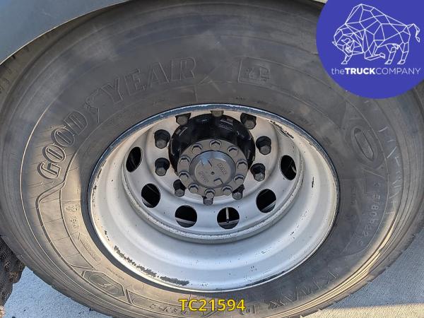 Achteras: Bandenmaat: 315/80 R22.5; Dubbellucht; Bandenprofiel linksbinnen: 15 mm; Bandenprofiel linksbuiten: 14 mm; Bandenprofiel rechtsbinnen: 15 mm; Bandenprofiel rechtsbuiten: 13 mm; Vering: luchtvering