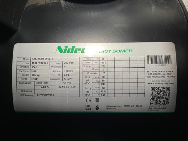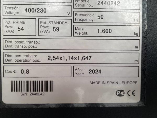 Generatorvermogen: 59 kVA