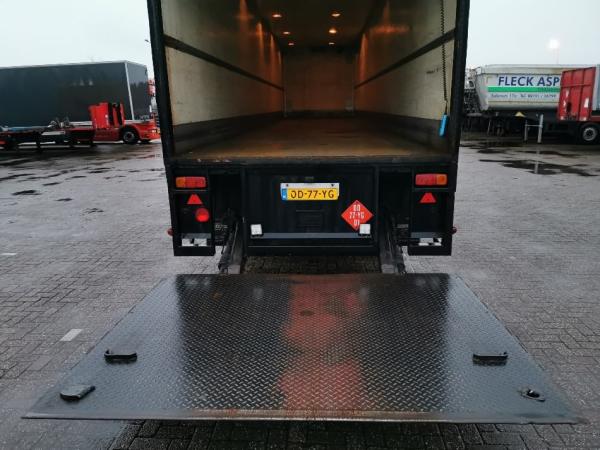 Aantal Assen: 2, Laadvermogen: 16940 kg, Eigen gewicht: 13060 kg, Totaalgewicht: 30000 kg, Soort chassis: Volledig chassis, Materiaal chassis: staal, Kingpin afmeting: 2 inch, Centrale smering, Vering type: vollucht, Kleur: Zwart, Bouwjaar opbouw: 1996, Merk as: BPW, Laadklep, Soort laadklep: achtersluit klep, Capaciteit laadklep: 2000 kg, Merk laadklep: Dautel, Materiaal laadklep: staal, Plateau grootte: 207x255, Laadklep voltage: 24, Reservewiel