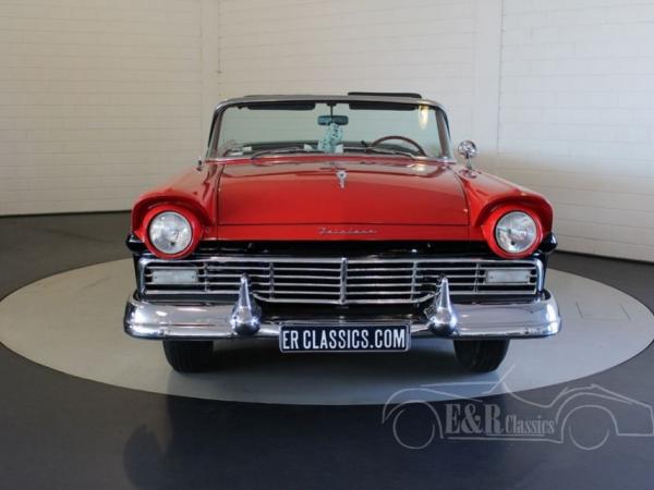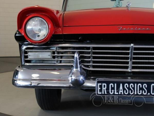 In 1957 this was the topmodel of the Ford Motor Company. The Ford Fairlane 500 Skyliner has the revolutionary retractable hardtop, which stores itself completely in the trunk. The impressive exterior is done in the marvellous colourcombination red/black with beautiful chrome. The interior has brown/white vinyl upholstery and the original dashboard in the colour of the car with the original radio. The Ford V8 engine is connected to the automatic gearbox and drives great. The Ford also has power steering which makes driving even more pleasant. This perfect driving Ford Skyliner convertible is a car for the real enthusiasts.