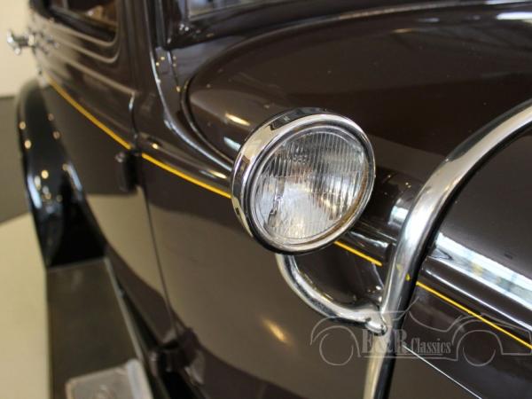 This is a fully restored 1930 Ford Model A Fordor. The Ford is painted in the originel Ford Brown paint with black accents and has the originel wire wheels. Technics are fully revised, so the car drives very good. The interior has marvellous brown cloth upholstery and dashboard in the colour of the paint.