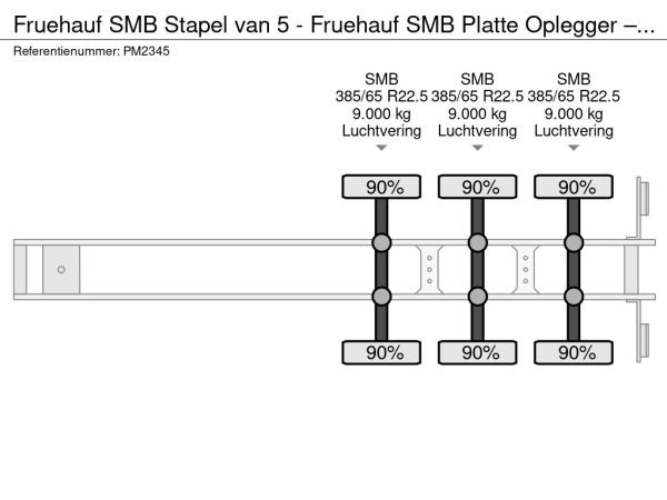 | Specialities | SMB Stapel van 5 - Fruehauf SMB Platte Oplegger – 3 Assen – Luchtvering – 28 Ton Laadvermogen – Klaar voor Export |