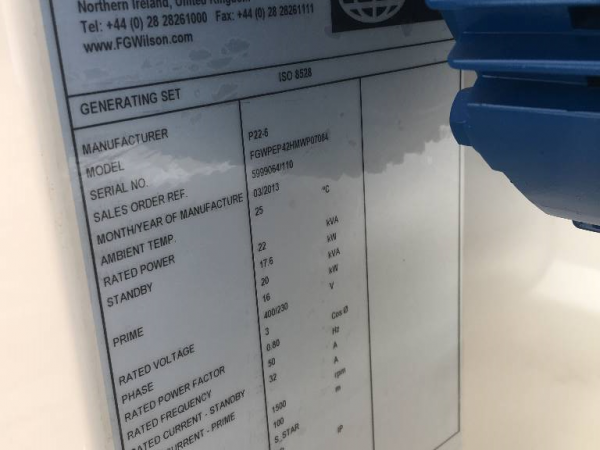 GENERATOR (2013) FG Wilson P 22-6 - 22 kVA Generator