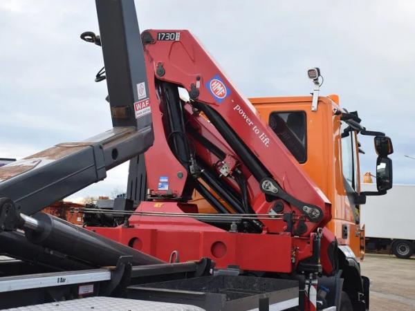 enkel 49.000 km !!! – Zoals nieuw !!! – HMF kraan 1730/ 4K – Radio gestuurd – Rotor met grijpfunctie – WAF 20 Ton Systeem – Naafreductie – Airco – Camera – Weegsysteem – totaal 26.000 kg – Tarra 13570 kg – wielbasis 3825 –