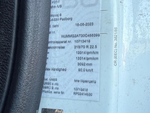 Achteras: Bandenmaat: 315/70R22.5; Dubbellucht; Differentieelslot; Bandenprofiel linksbinnen: 30%; Bandenprofiel linksbuiten: 30%; Bandenprofiel rechtsbinnen: 30%; Bandenprofiel rechtsbuiten: 30%; Reductie: enkelvoudige reductie; Vering: luchtvering