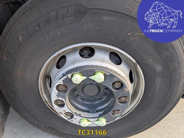 Achteras: Bandenmaat: 315/80 R22.5; Dubbellucht; Bandenprofiel linksbinnen: 5 mm; Bandenprofiel linksbuiten: 5 mm; Bandenprofiel rechtsbinnen: 3 mm; Bandenprofiel rechtsbuiten: 4 mm; Vering: luchtvering