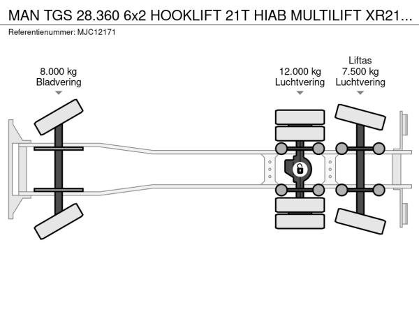 MAN (2008) MAN TGS 28.360 6x2 HOOKLIFT 21T HIAB MULTILIFT XR21-S51 - LIFT AXLE - BE TRUCK MJC12171